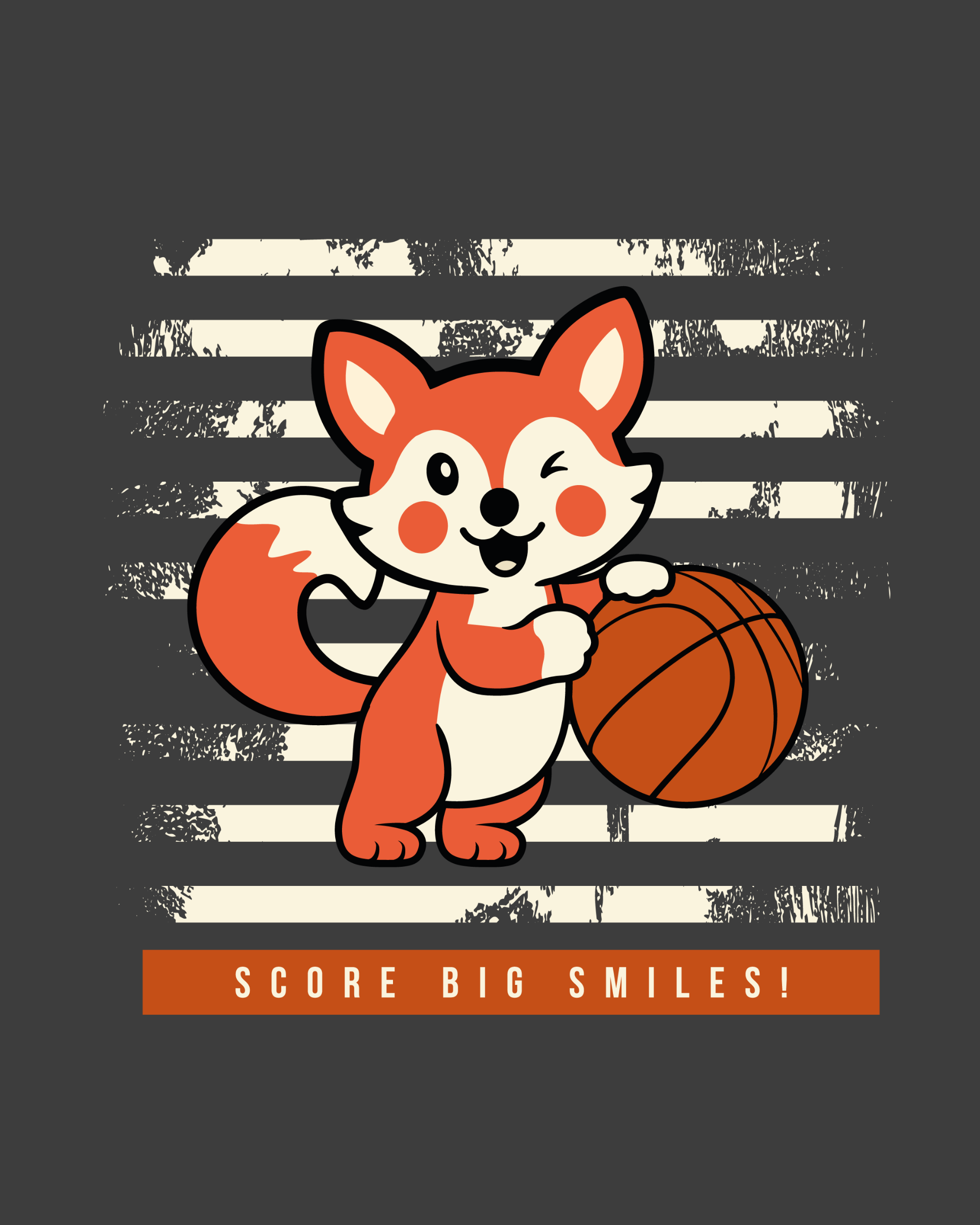 Dark grey cotton tee with a DTF-printed mascot graphic featuring puff-print basketball and embossed lettering. Fun, tactile, and sporty - built for play and smiles.