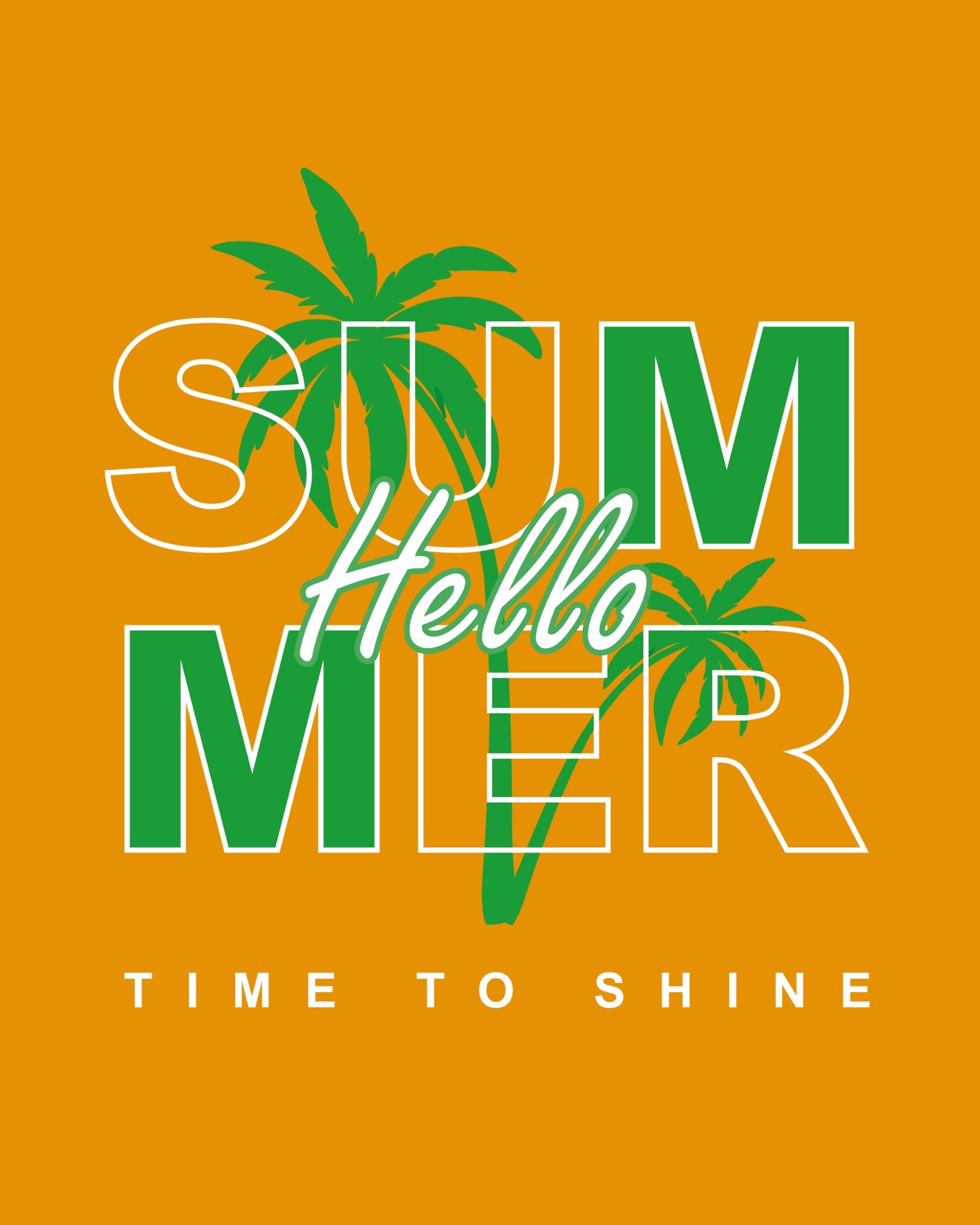 Mustard yellow cotton tee with puff-printed “HELLO SUMMER” chest graphic and embroidered “Time to Shine” tagline. Soft, breathable, and full of sunshine.
